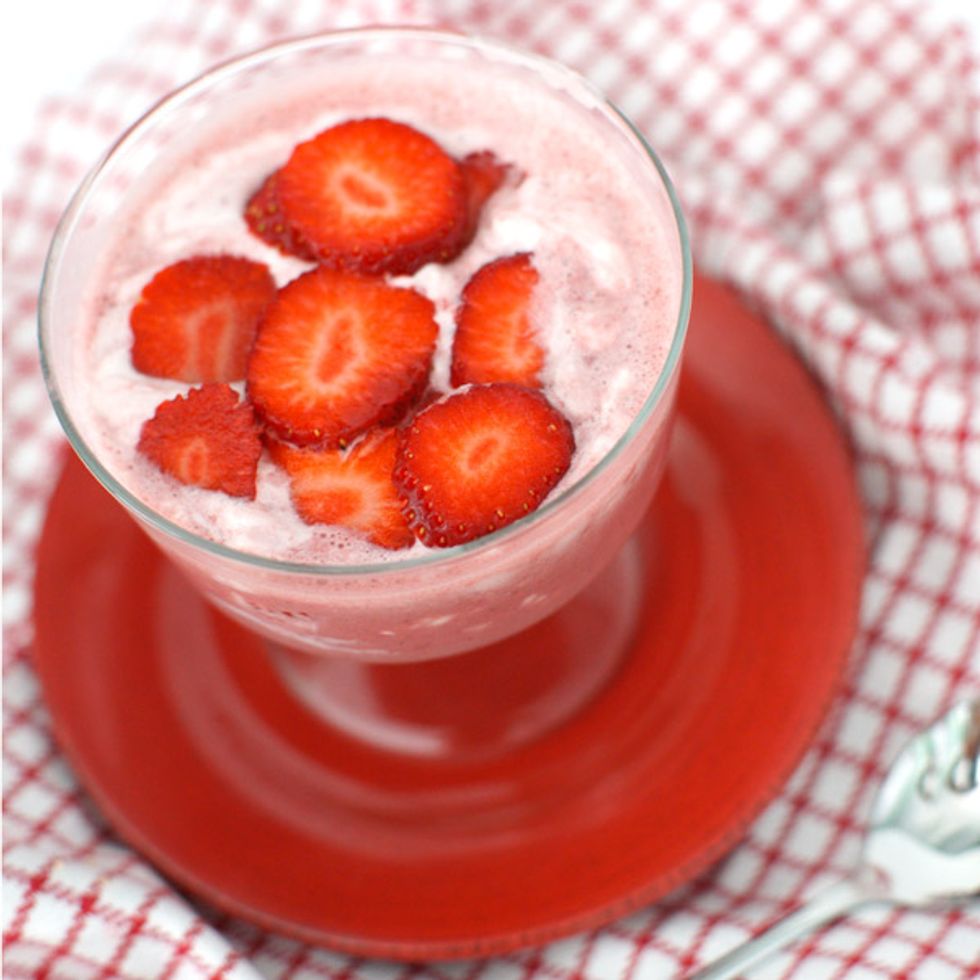 A refreshing dessert made with fresh strawberries, sour cream, honey and a nice red wine.