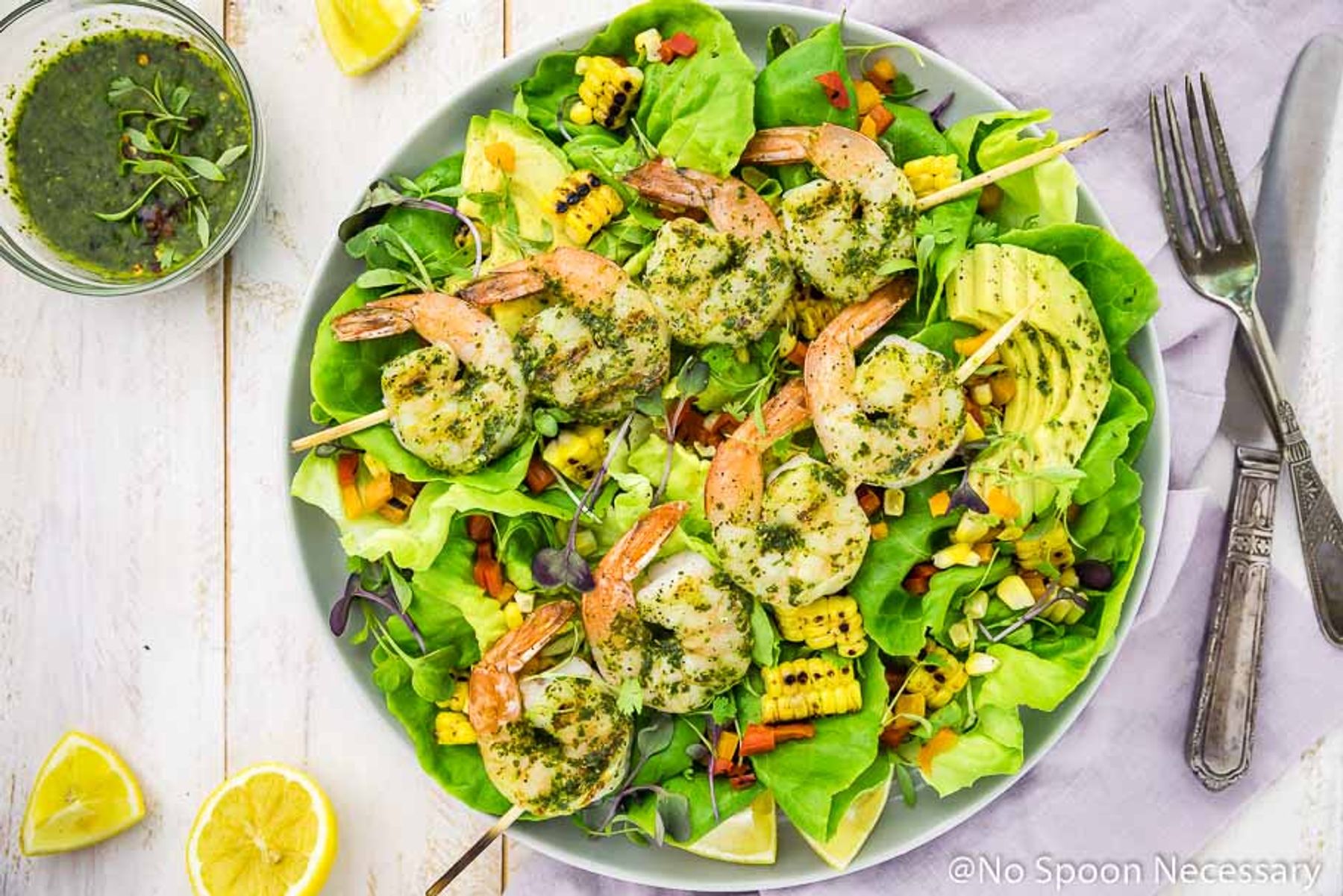 Chimichurri Grilled Shrimp, Corn & Sweet Pepper Salad