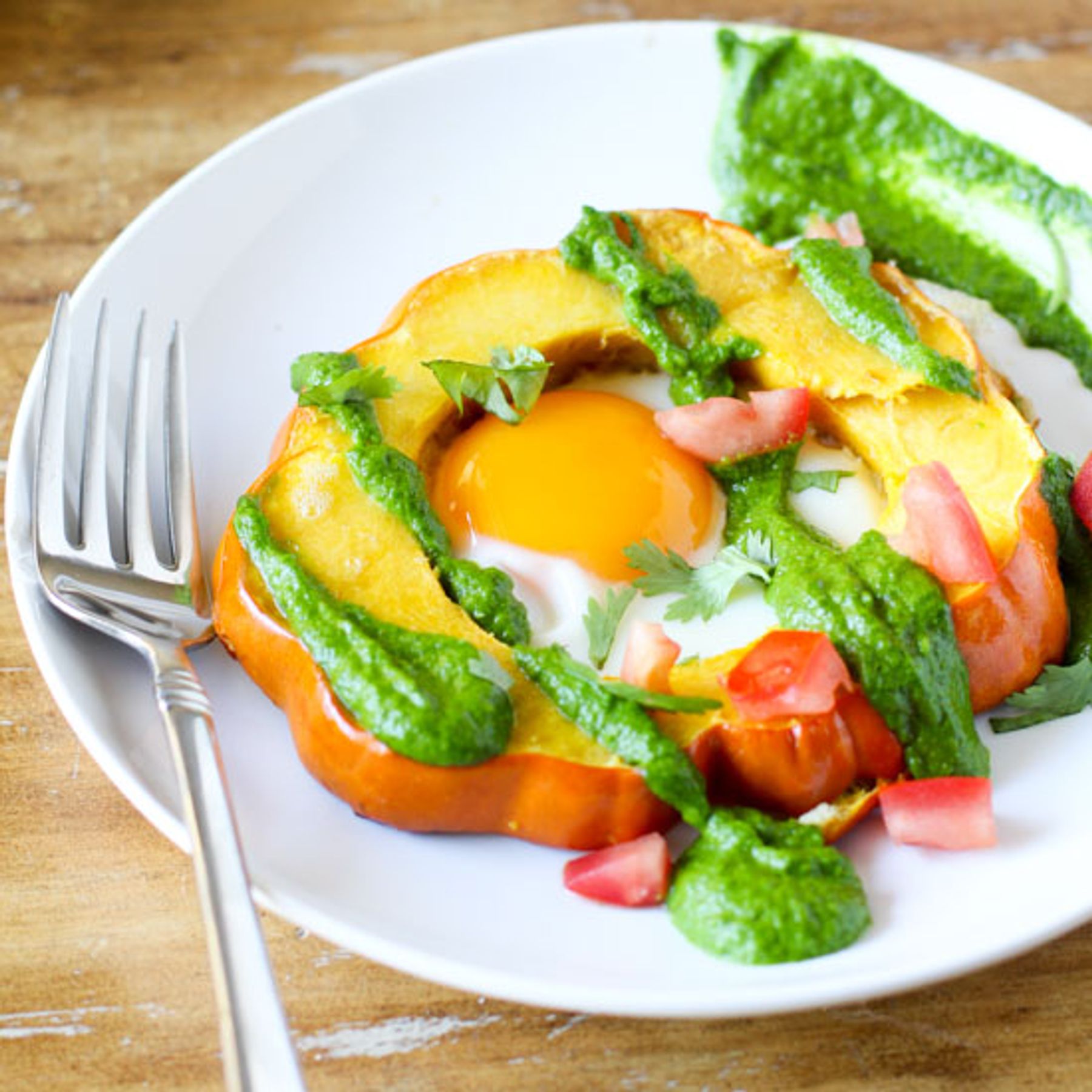 Chimichurri Squash Egg-in-a-Hole is a fun nutrient and flavor-packed low carb fall meal! Gluten-Free, Dairy Free, Paleo Friendly