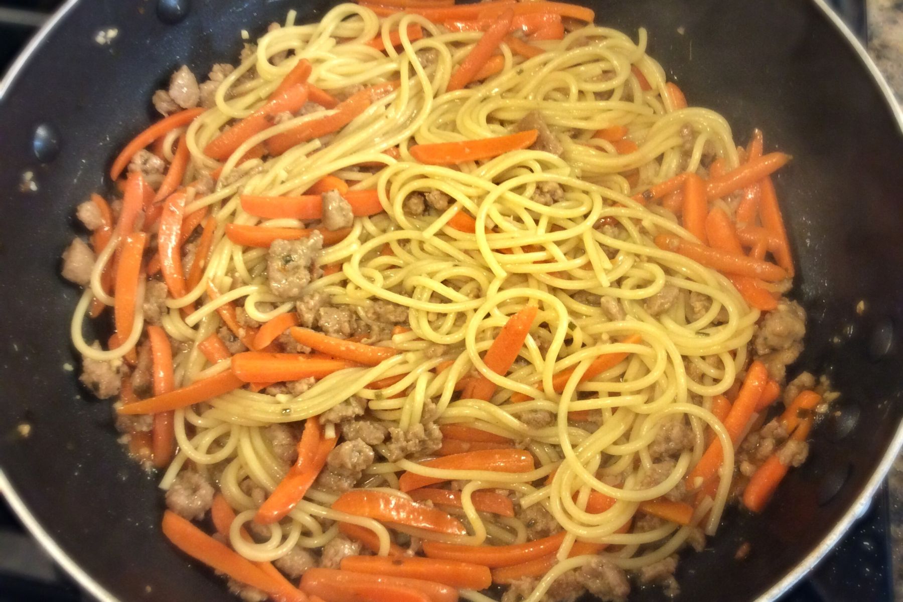 Simple, budget friendly Asian inspired spaghetti using ground beef!