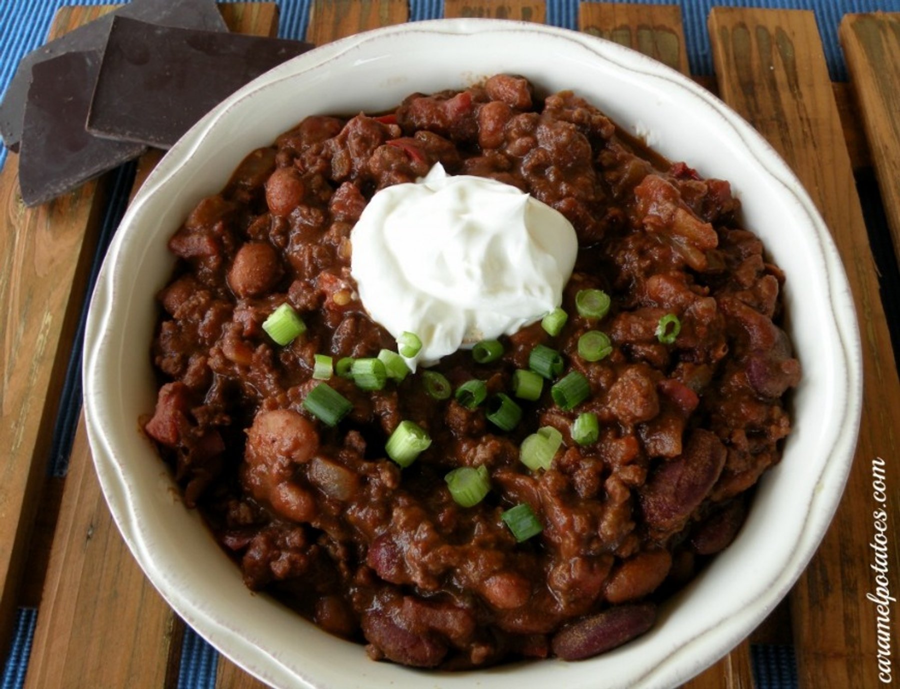 Smoky chipotle chilis and earthy unsweetened chocolate gives this chili and whole new taste.