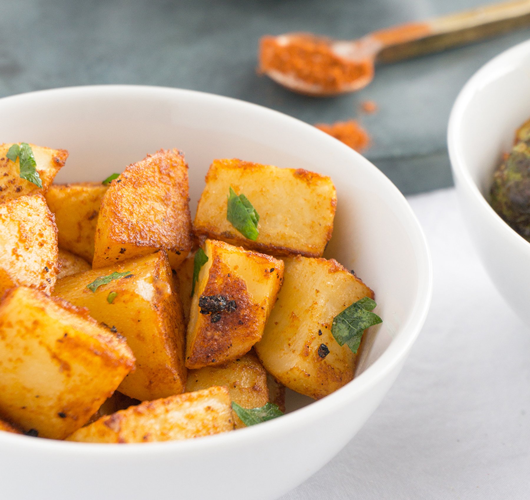Chipotle BBQ Roasted Potatoes starts with a simple chipotle BBQ seasoning mix using spice drawer staples. It’s great on veggies like roasted potatoes or Brussels sprouts. It’s also a perfect way to season healthy snacks like roasted nuts, chickpeas and popcorn!