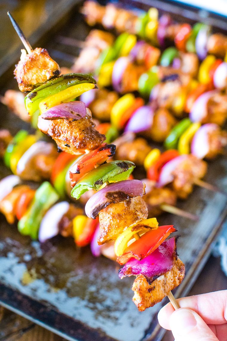 Quick and easy chicken skewers in a delicious chipotle marinade! These Chipotle Chicken Skewers with onions and peppers will put a kick in your step with the Chipotle Hot Sauce! Perfect for weeknight grilling, entertaining and tailgating!