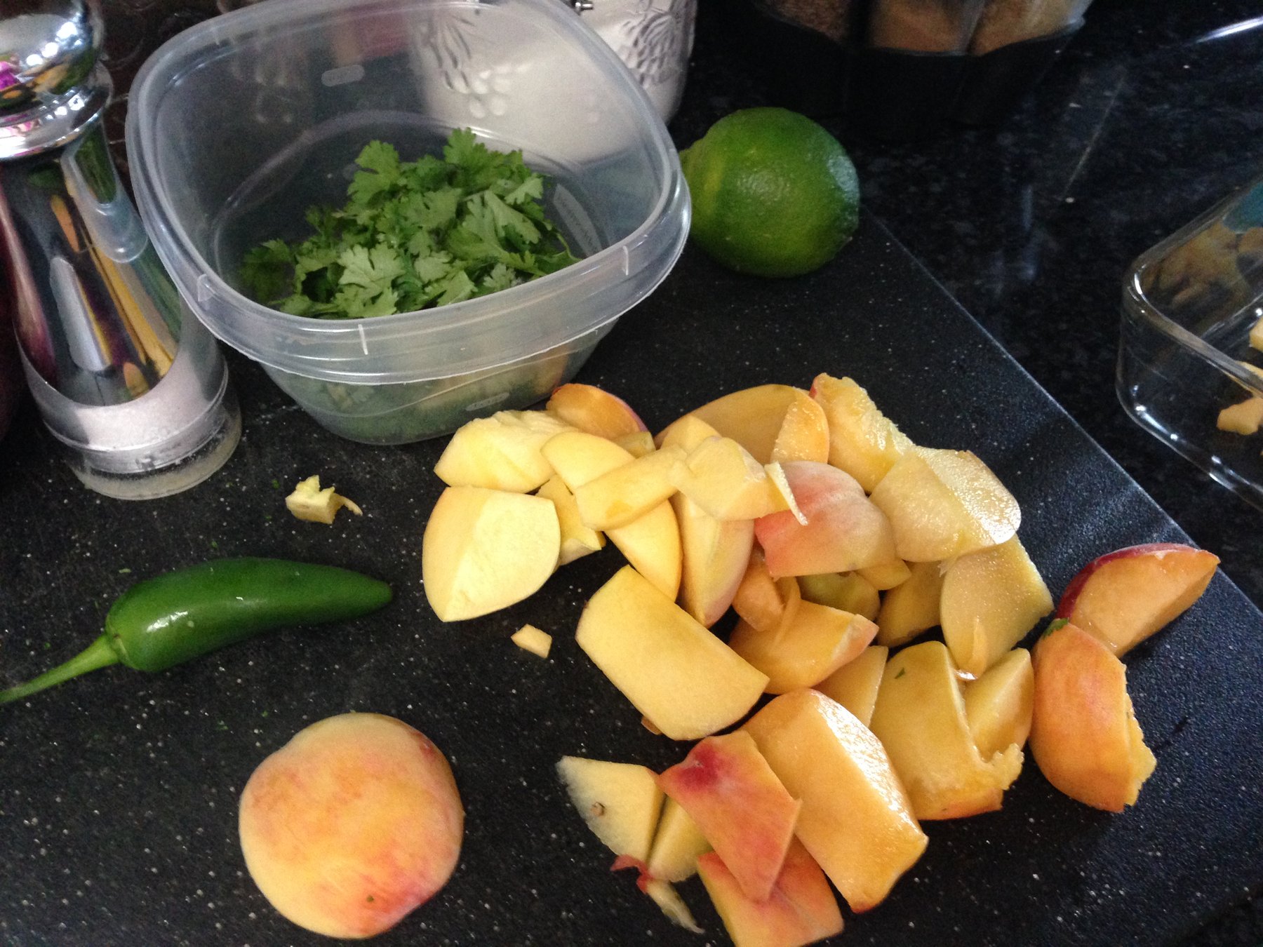 To make the Cilantro Peach Salsa. Very gently, rub the peaches with a towel to remove fuzz. Dice and place in a bowl. Half and...