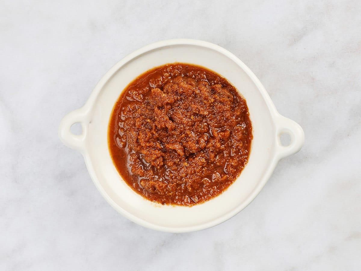 Salsa de chipotle is made with charred tomatoes, onion and garlic. It's blended and cooked to a smoky, slightly spicy perfection.