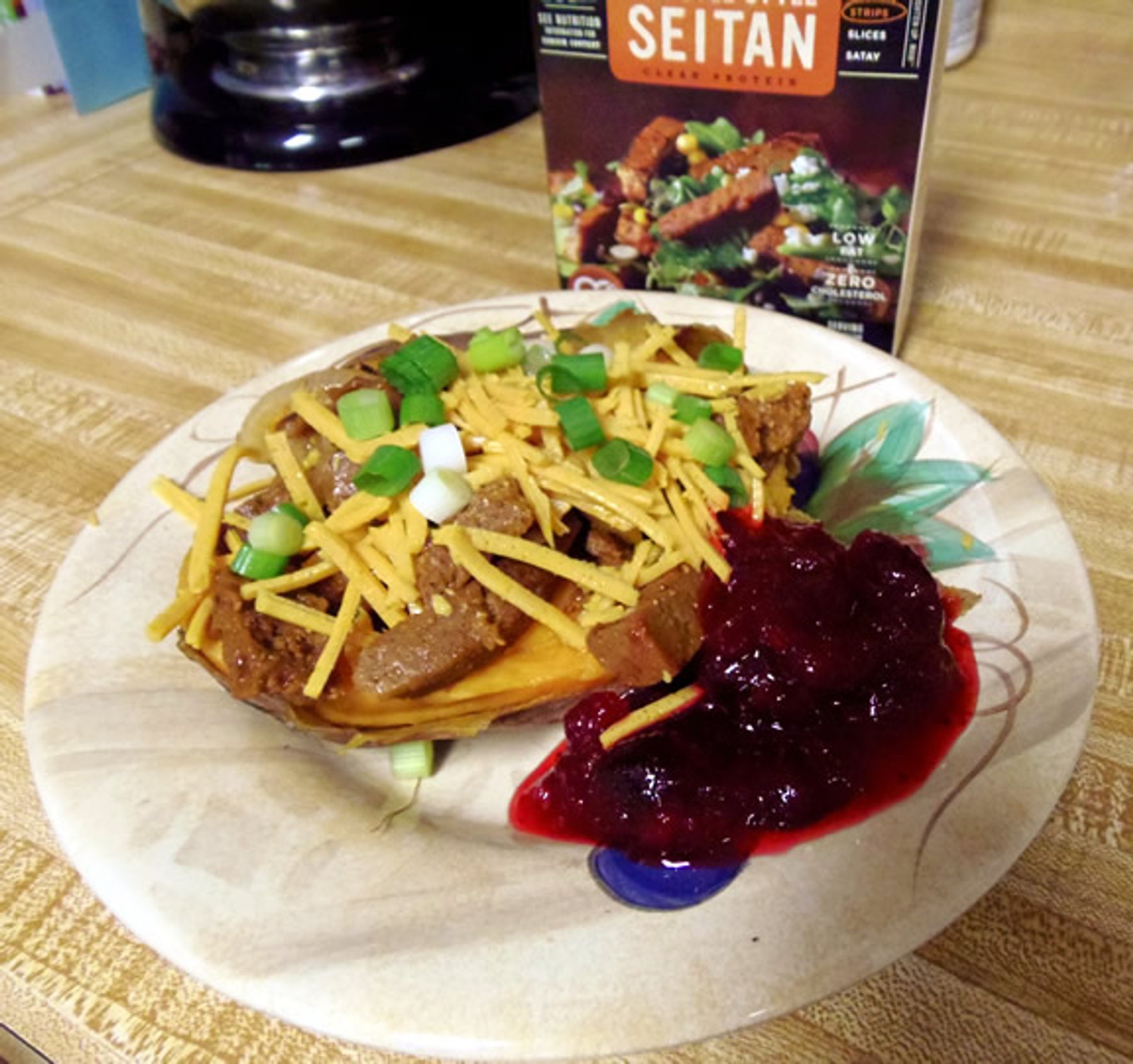 Re-heat the sweet potato (I put mine, still wrapped in foil in the toaster oven at 350 for 30 minutes.). While that is reheating spray a non-stick skillet with spray and begin sauteing the onion. After...