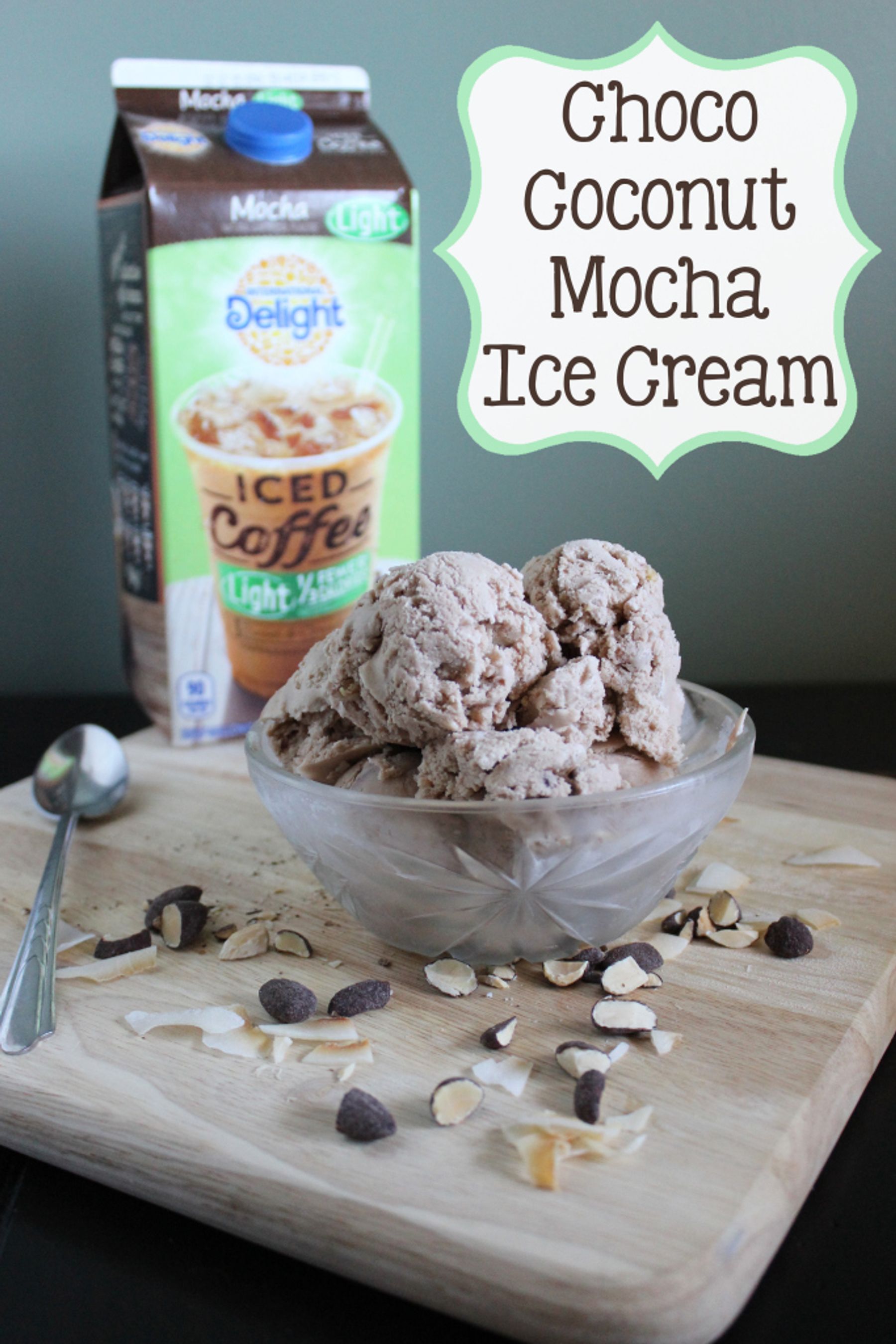 Cocoa covered almonds, toasted coconut flakes, and International Delight Iced Coffee Mocha Light, makes this Choco Coconut Mocha Ice Cream the perfect afternoon pick-me-up that reminds you of one of your favorite candy bars!