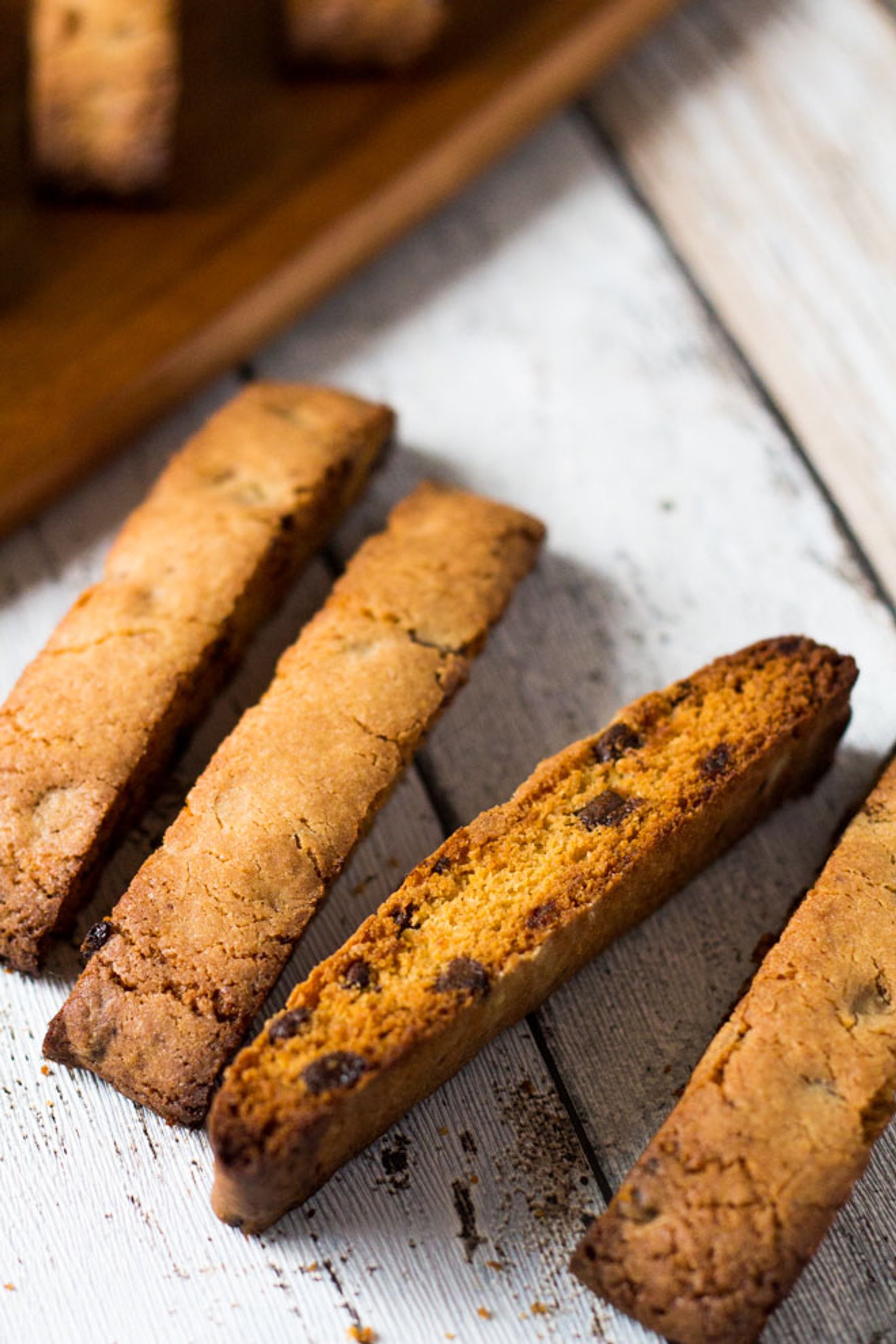 Twice-baked crunchy almond flavoured Biscotti studded with chocolate chips!