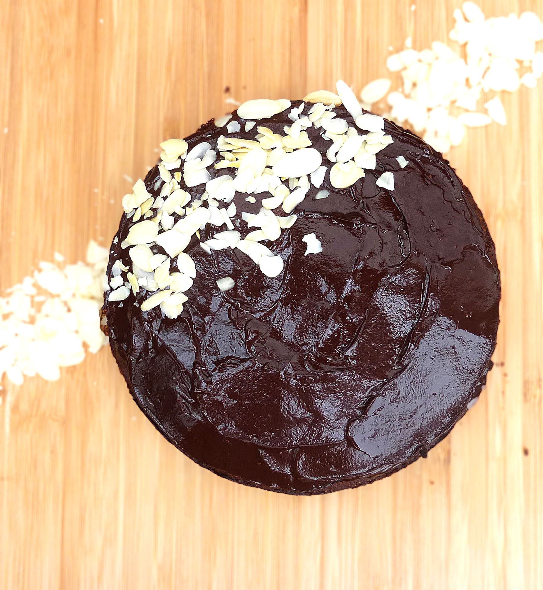 Chocolate Almond Cake with a Dark Chocolate Ganache (no refined sugar & GF)