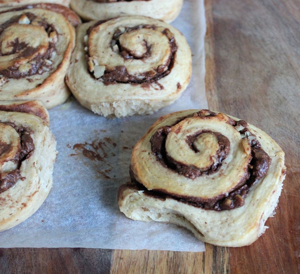 Chocolate and Nut Scrolls with Nutella, Almonds, and Macadamia Nuts.