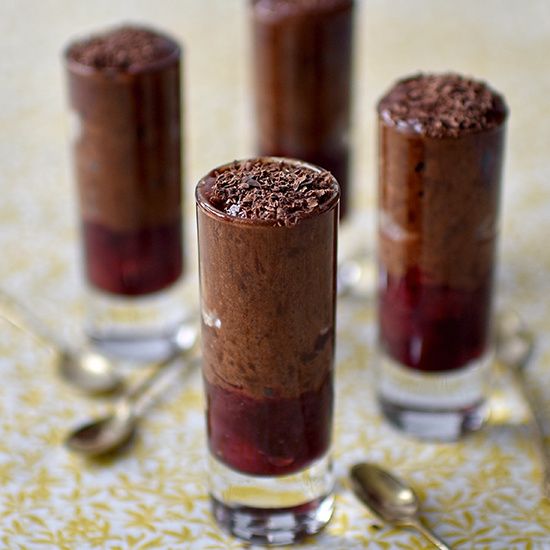 chocolate and olive oil mousse with cherry compote