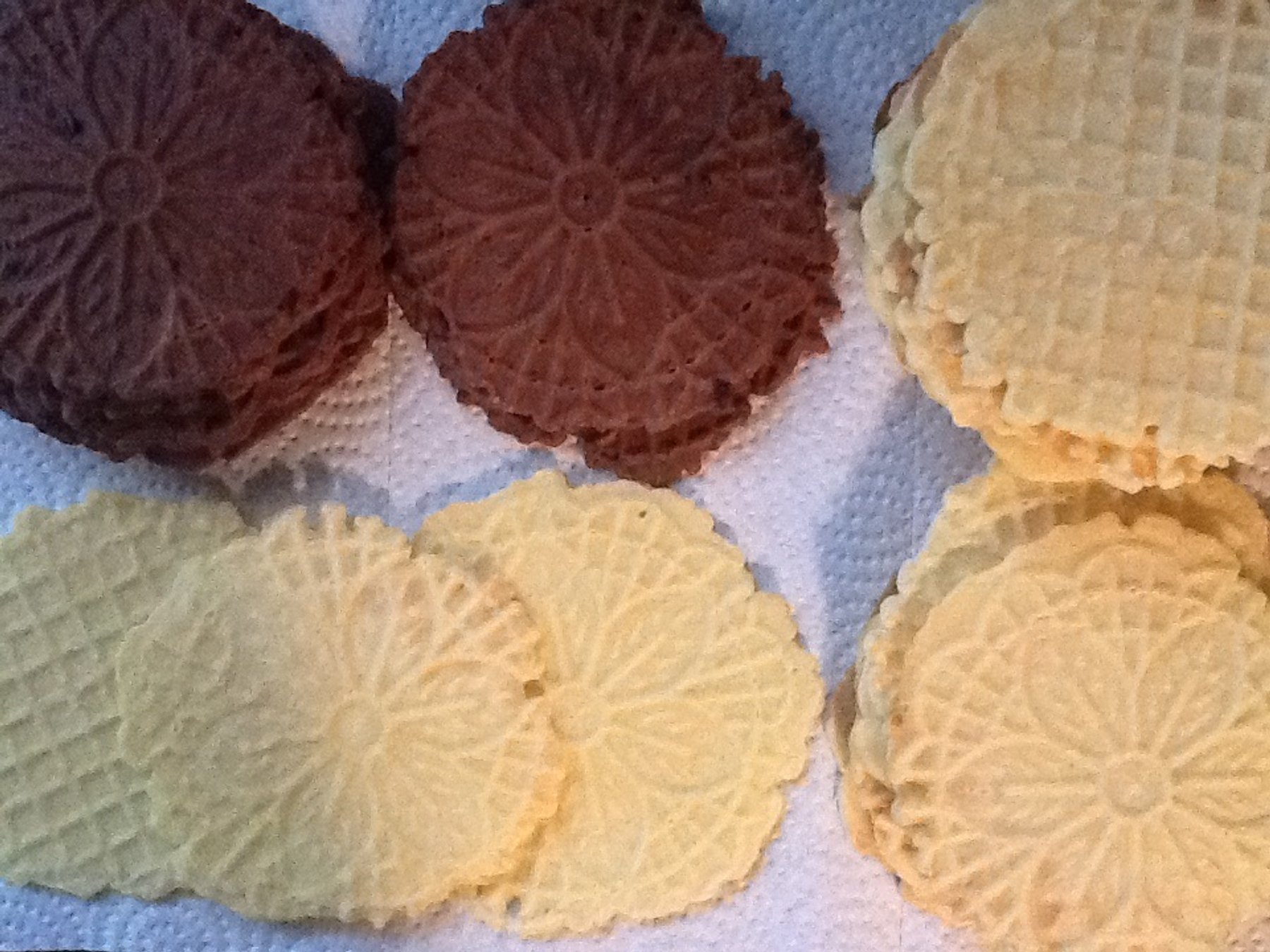 Heat the iron, Drop a full tablespoon onto the plate and close lid. Timing differs from iron to iron but it takes usually no more than one minute for it to come to a blond colour on the anise and the chocolate to stiffin up.
