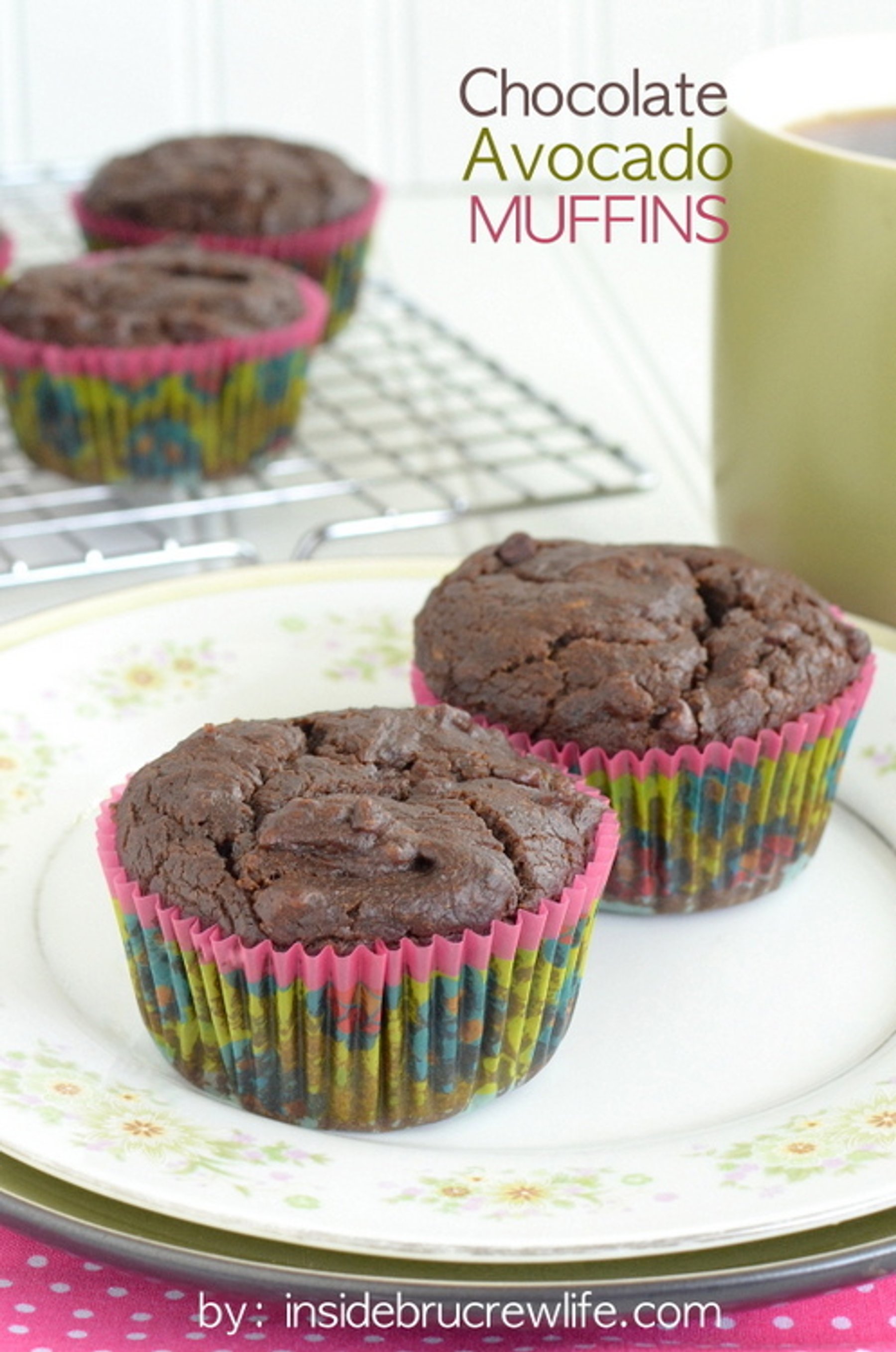 Chocolate muffins get healthy with avocados, applesauce, yogurt, and coconut oil