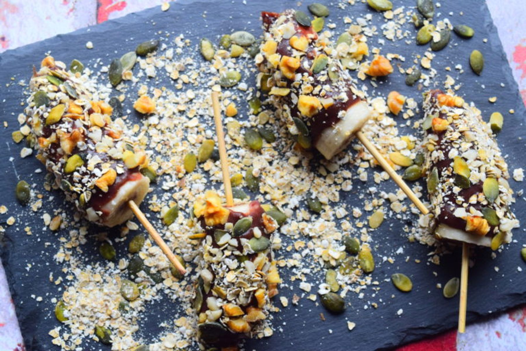 For an easy to make snack that is perfect to have in the freezer for any sweet cravings, these delicious ice-cream banana pops are a must try. These are made with melted dark chocolate, but you could try a making a chocolate ganache with cacao and maple syrup too.