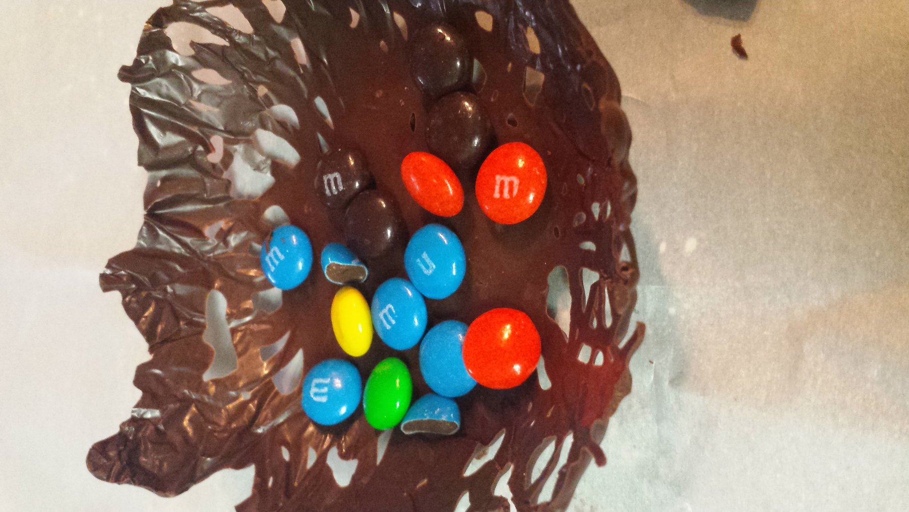 5. once the chocolate is set completely,remove the foil slowly from the bowl and your designed chocolate bowl is ready.