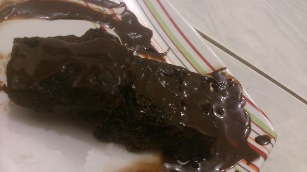 It is very delicious, fudgy and just perfect for a dessert!! I did not have ice cream present so i just gave it a drizzle of that amazing chocolate sauce