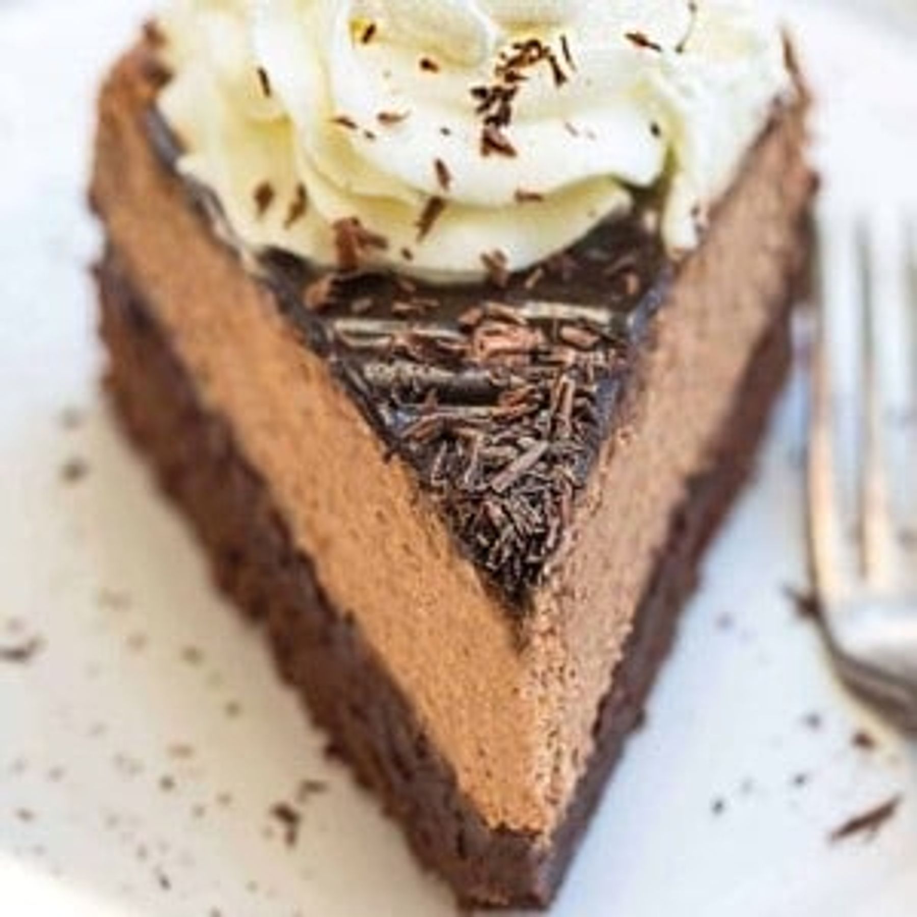 Chocolate Brownie Cheesecake - the ultimate cheesecake for chocolate lovers! A fudgy brownie bottom, topped with a a rich and creamy chocolate cheesecake.