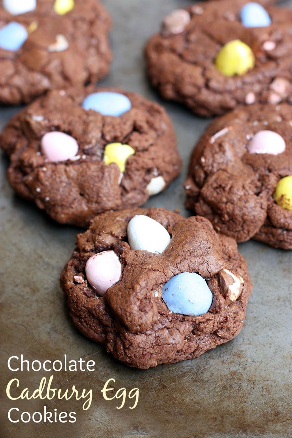 Thick and chewy double Chocolate Cadbury Egg Cookies make the perfect fun and easy Easter treat.