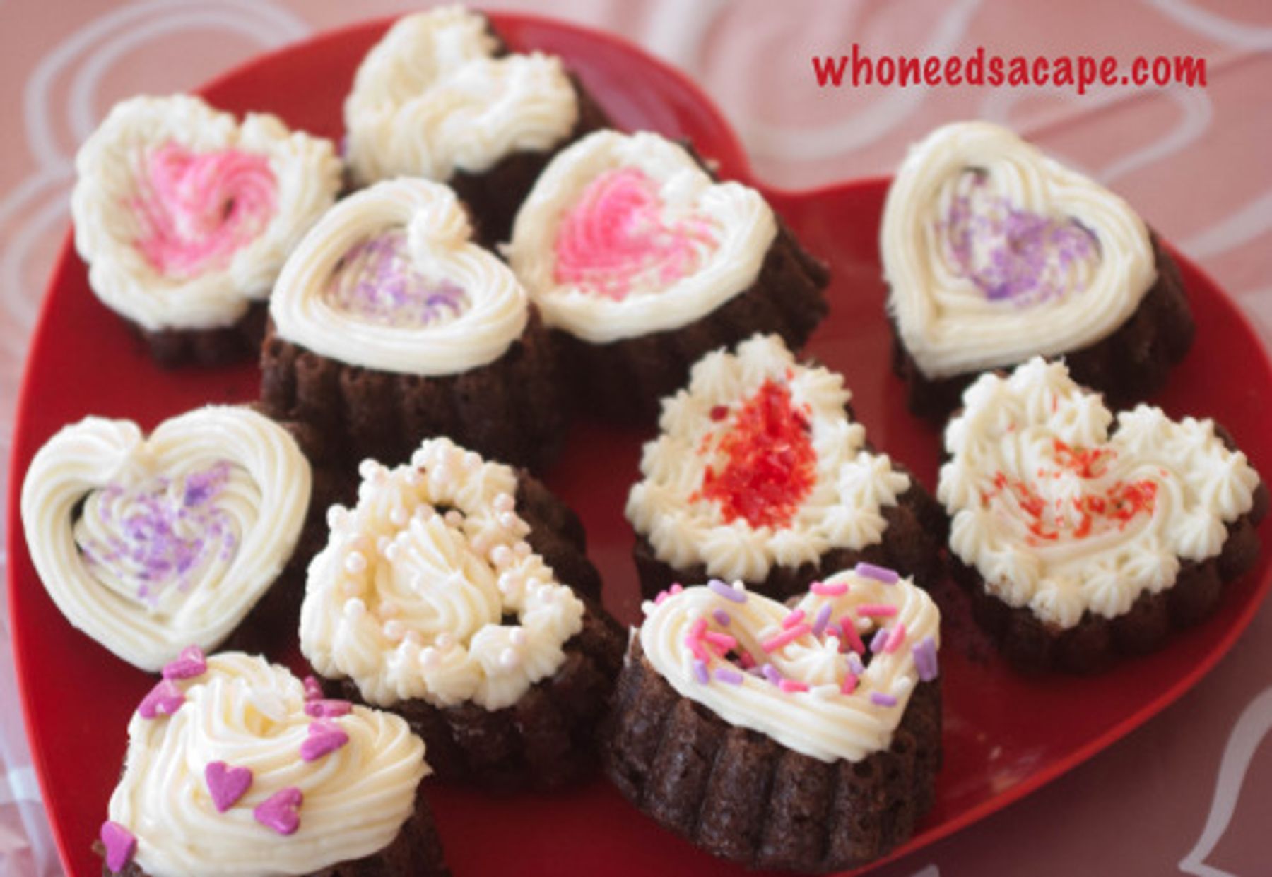 Chocolate Cake Hearts with Cream Cheese Frosting