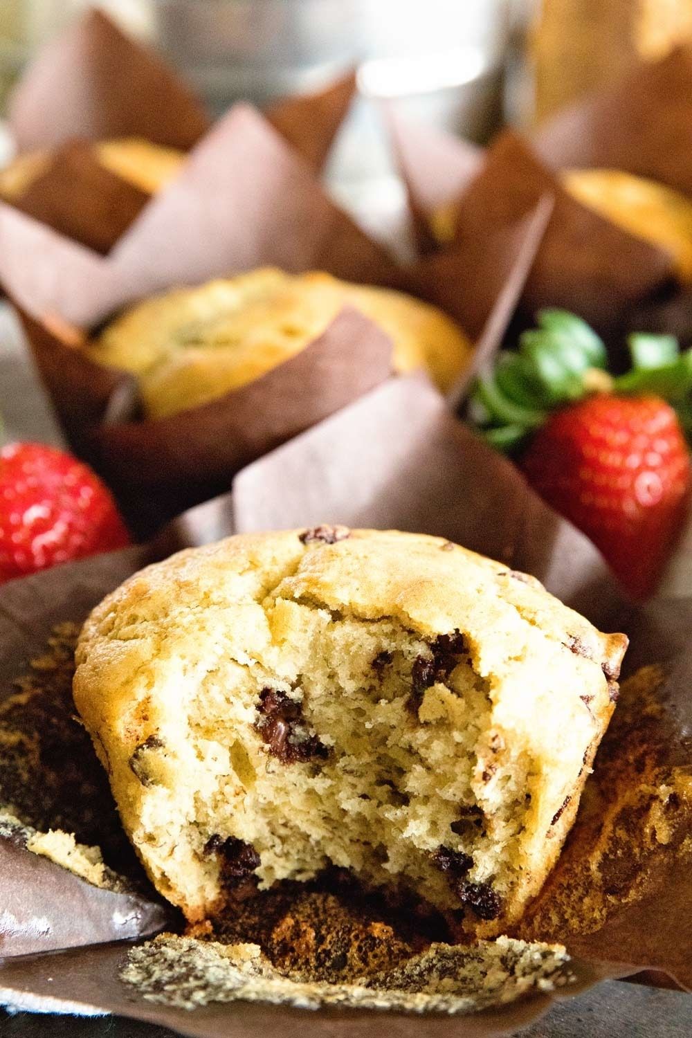 Chocolate Chip Banana Muffins ~ Your Favorite Homemade Banana Muffins Loaded with Chocolate Chips for the Perfect Sweet Touch! Perfect for Breakfast if you Like Chocolate!
