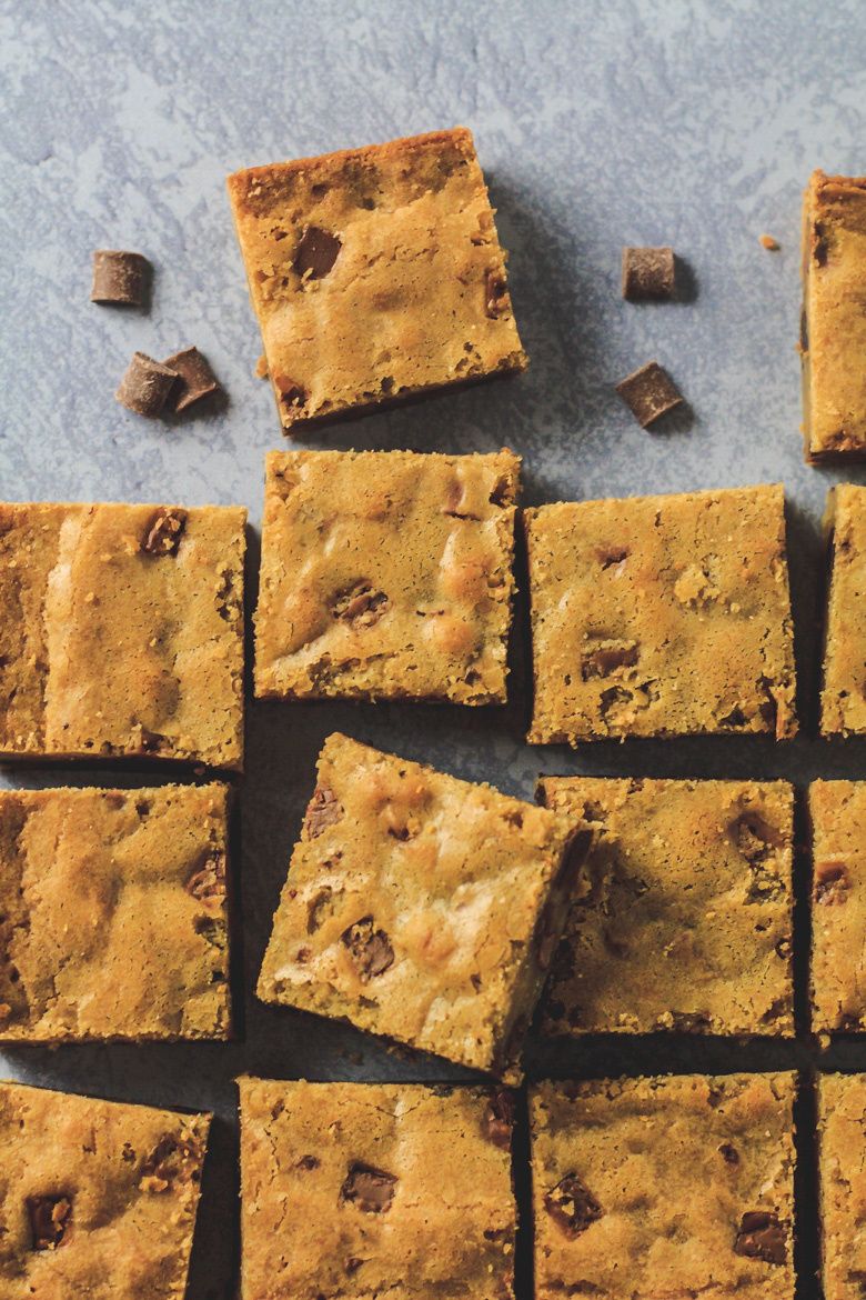 These deliciously thick and chewy blondies are stuffed full of chocolate chips, big on flavour, and have that irresistible crinkly top!