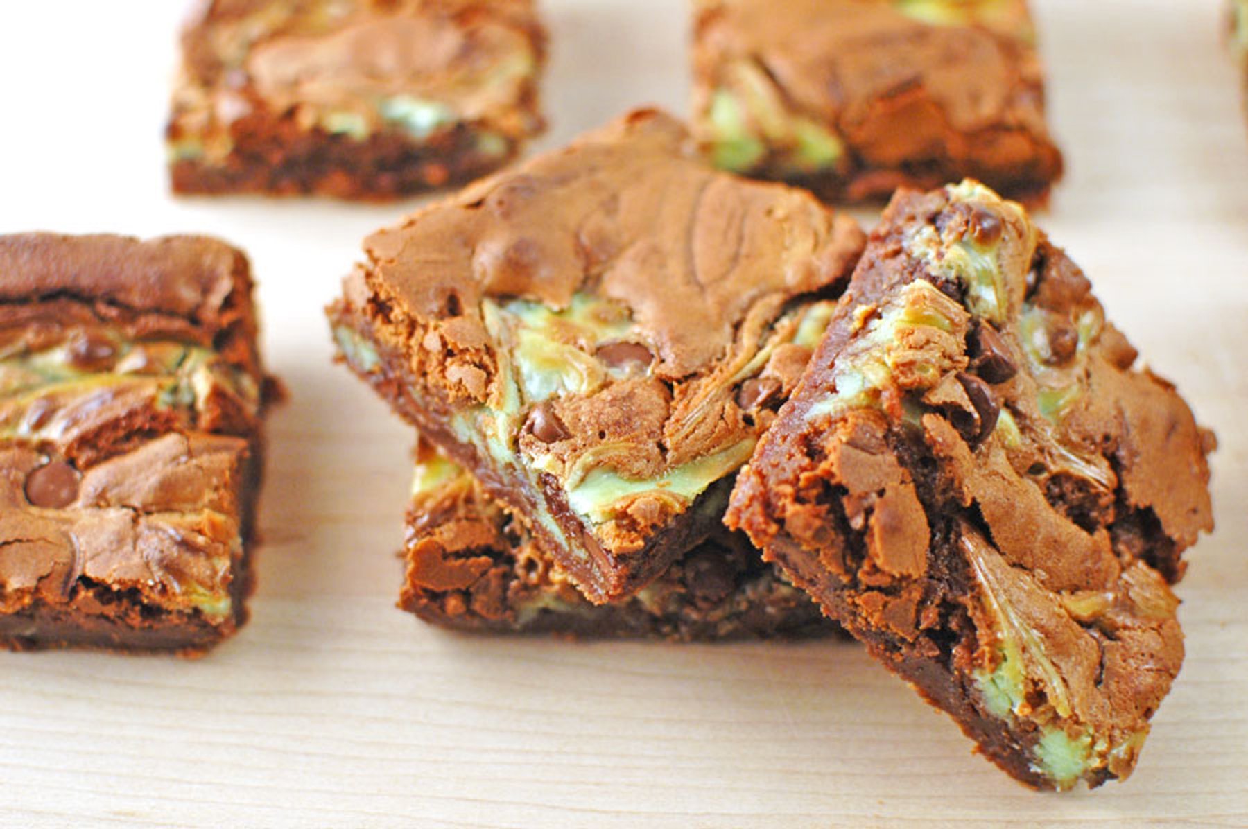 These green Chocolate Chip Cheesecake Brownies are a sweet treat for the family for St. Patrick's Day. The layer of green cheesecake adds a fun twist to the delicious brownies.