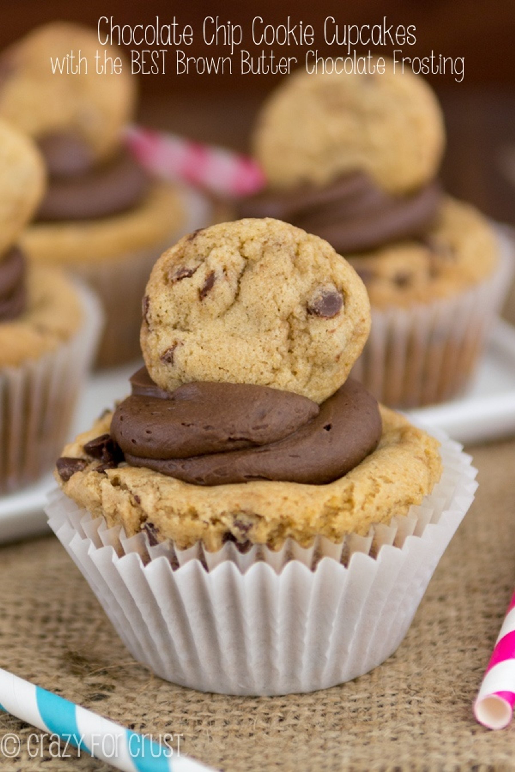 A chocolate chip cookie that looks like a cupcake. It's topped with the best brown butter chocolate frosting!