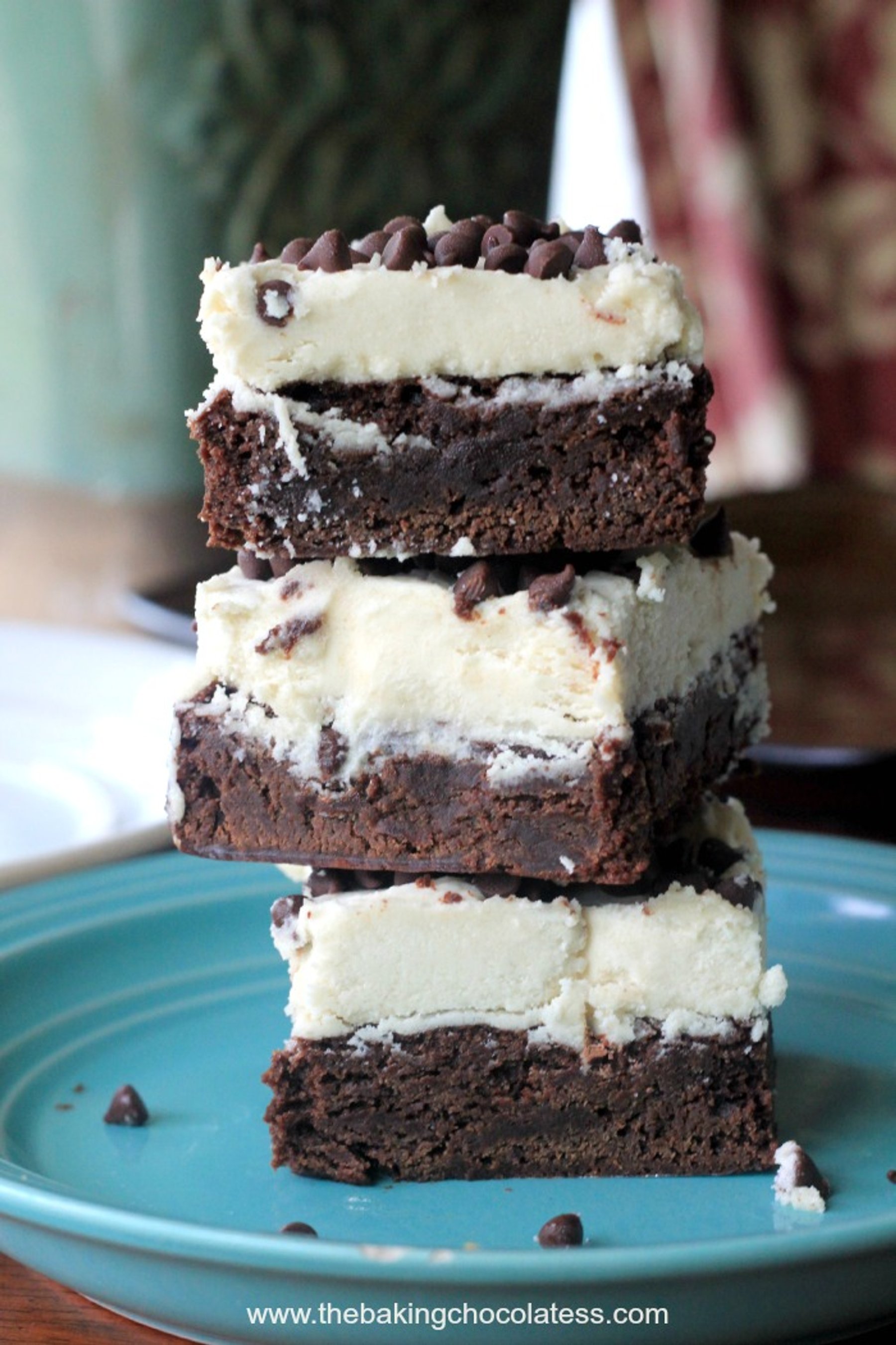 Thick, rich chewy brownies frosted with a light, buttery, creamy cookie dough buttercream frosting adorned with chocolate chips. Hallelujah!
