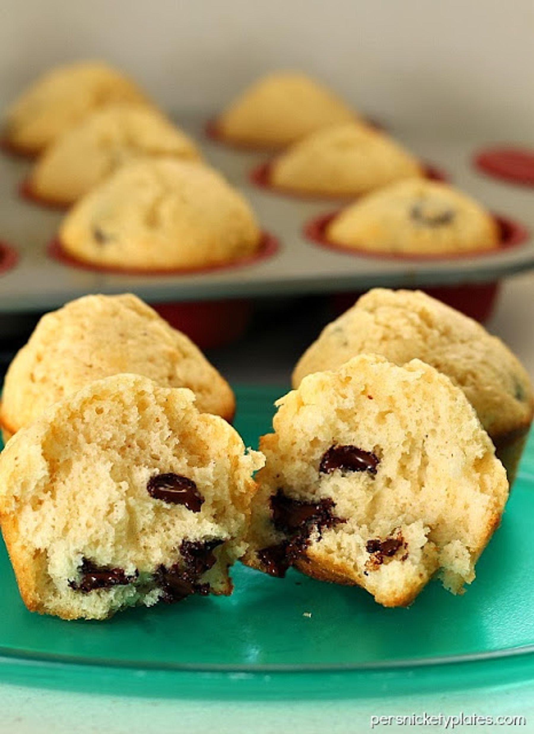 Quick chocolate chip breakfast (or anytime) muffins made with ingredients you probably already have in your pantry.