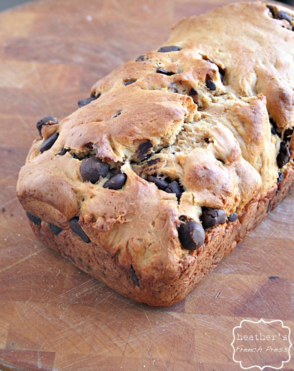 slightly sweet peanut butter bread loaded with dark chocolate chips