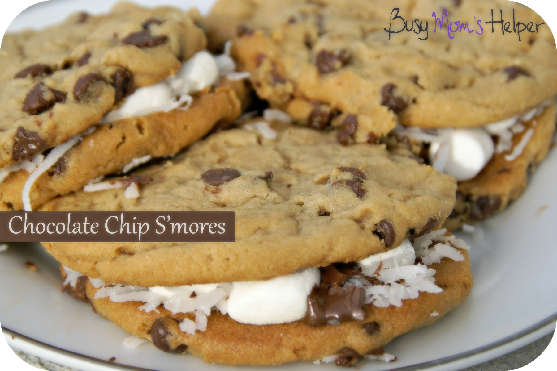Chocolate chip cookies with delicious gooey S'more filling, and just a hint of coconut