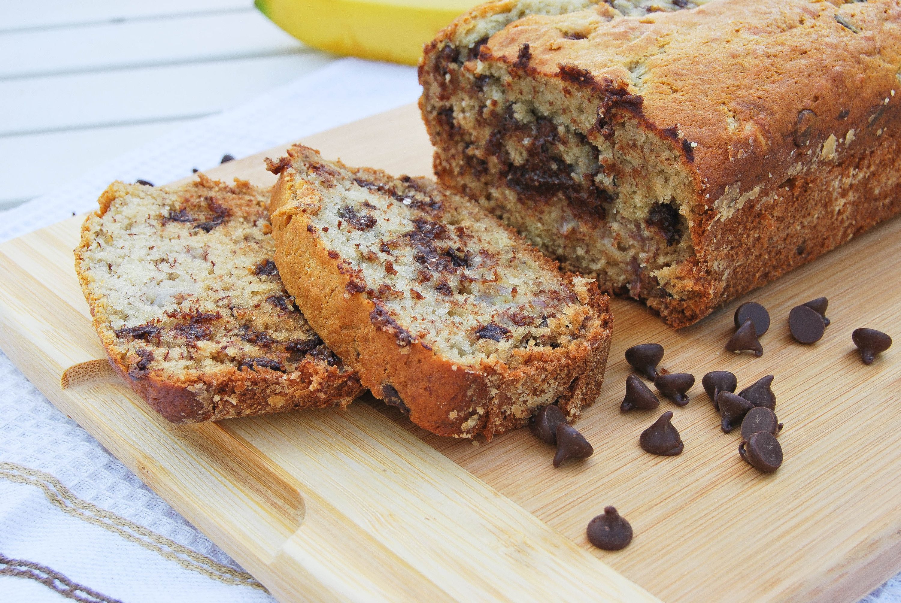 A bread absolutely bedazzled with chocolate chips and walnuts.