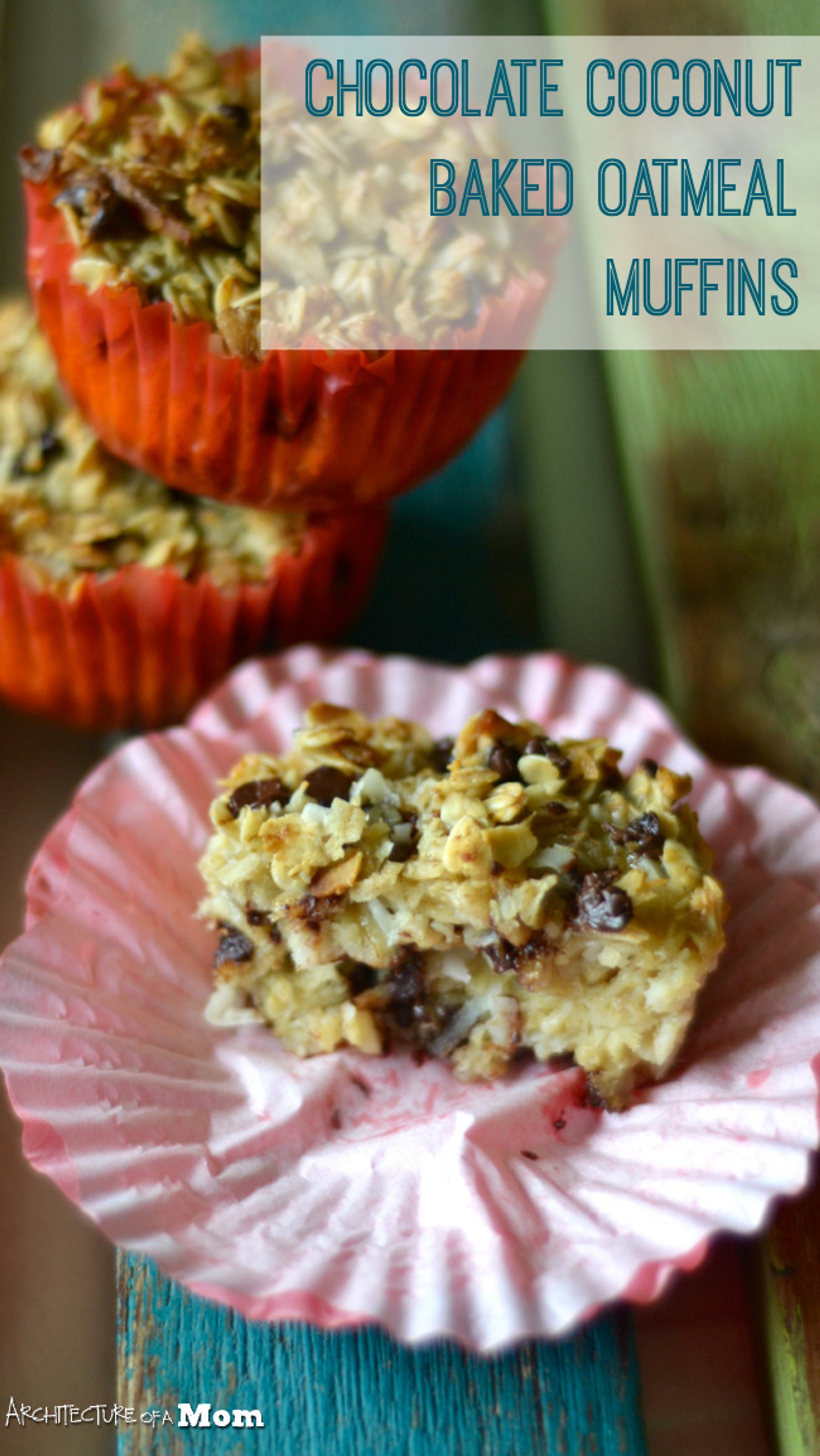 I think that it's well established that I love the combination of chocolate and coconut. After all, I've made mound granola, samoa pie, and samoa donuts and loved every minute of it. Recently, I've been looking for breakfast recipes that are easy to grab and go and I've stumbled across several examples of making baked oatmeal in a muffin form—perfect for a grab and go recipe. So of course I had to make my own spin on it and make chocolate coconut baked oatmeal muffins—and I h