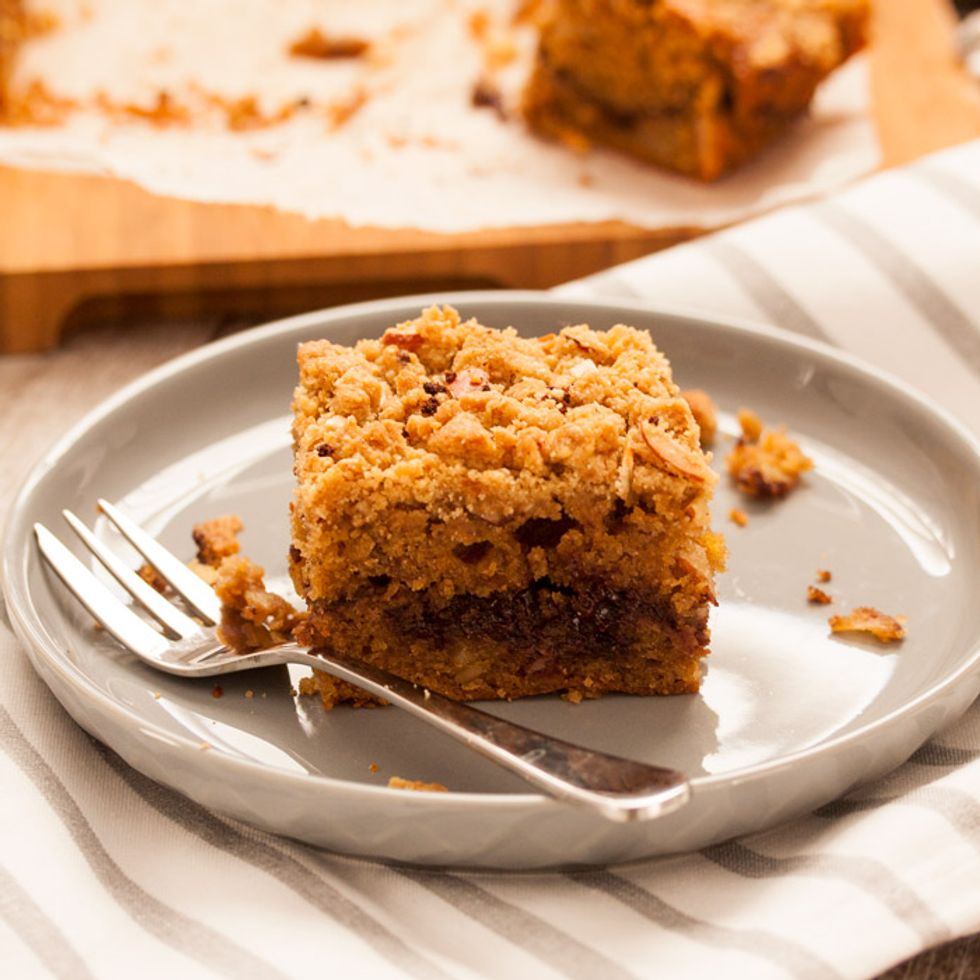 Perfect Coffee Crumb Cake, loaded with a crunchy, crumble topping and a layer of Chocolate Fudge Sauce through the middle.