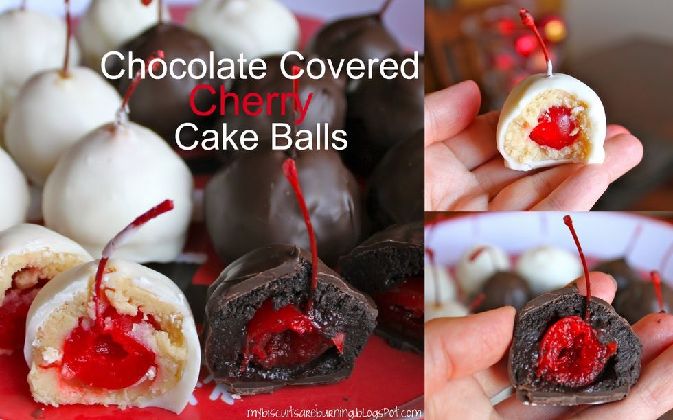 Cake balls covered in chocolate with a sweet cherry in the center. These are perfect treats for Christmas, Valentine's Day or any special occasion!