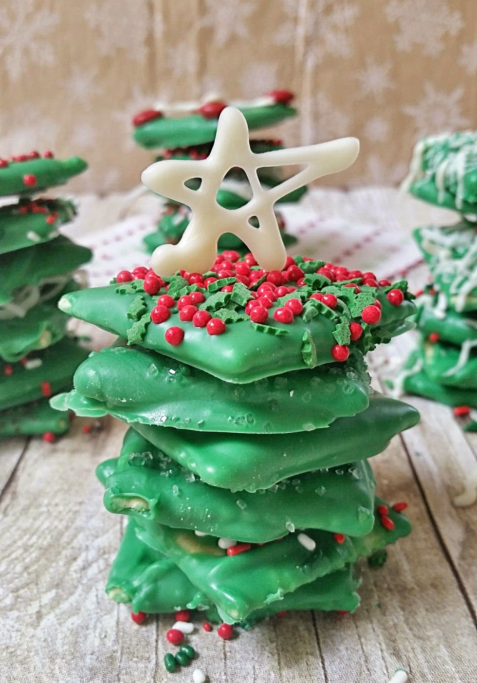 In all our baking and creating, and obsession with all things sweet and salty we created this chocolate covered cracker tree! I am so excited to make these chocolate covered cracker trees the center of our Christmas dessert table, just grab a chocolate cracker off the top and enjoy!