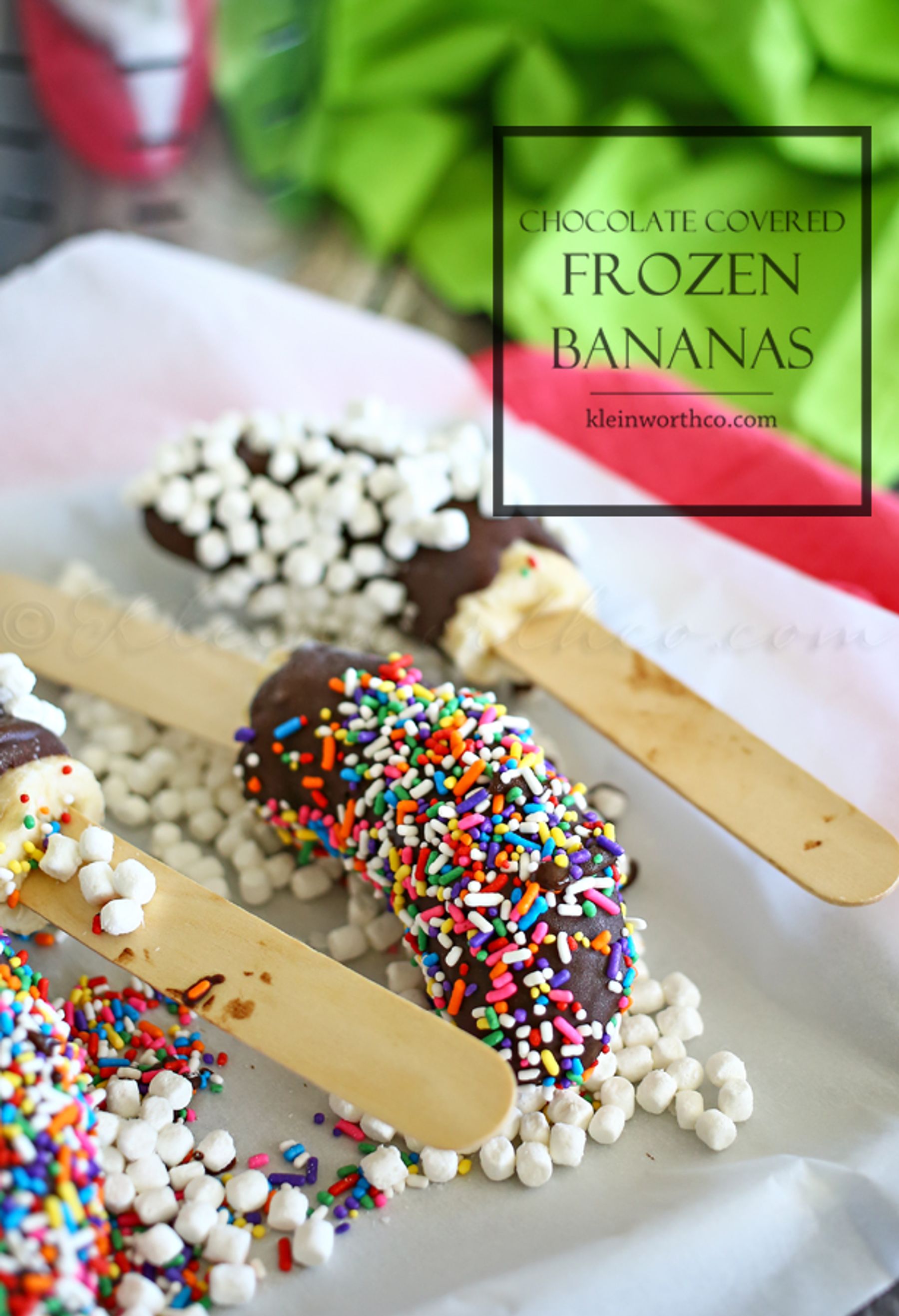 A summertime favorite - frozen bananas covered in chocolate & toppings