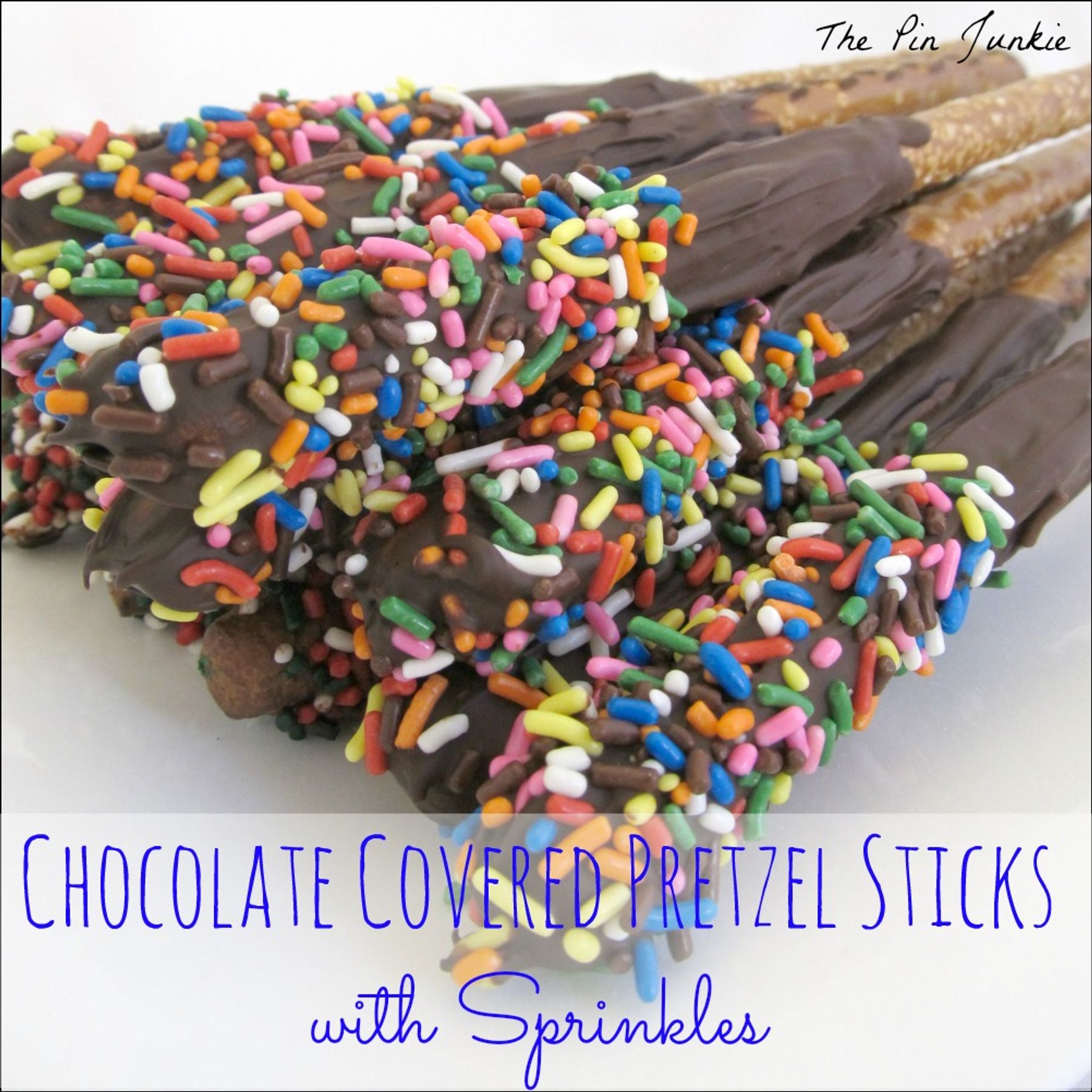 Chocolate Covered Pretzel Sticks with Sprinkles