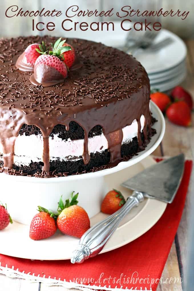 Chocolate Covered Strawberry Ice Cream Cake | Let's Dish Recipes