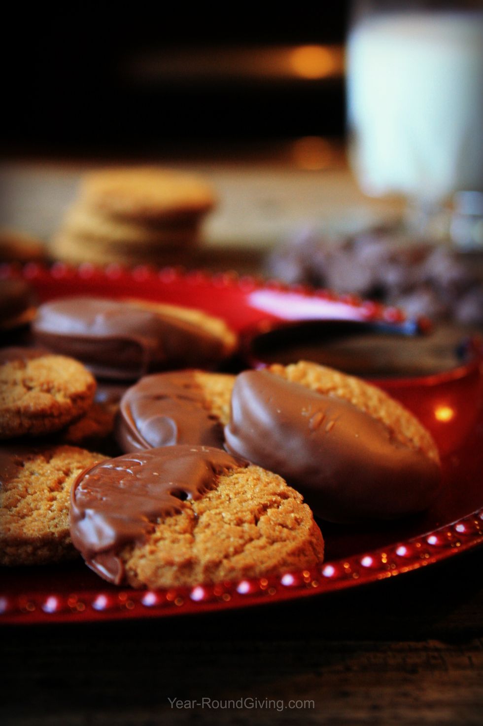 Dip ginger snaps half way into the chocolate. With a spoon scrap off excess chocolate.
