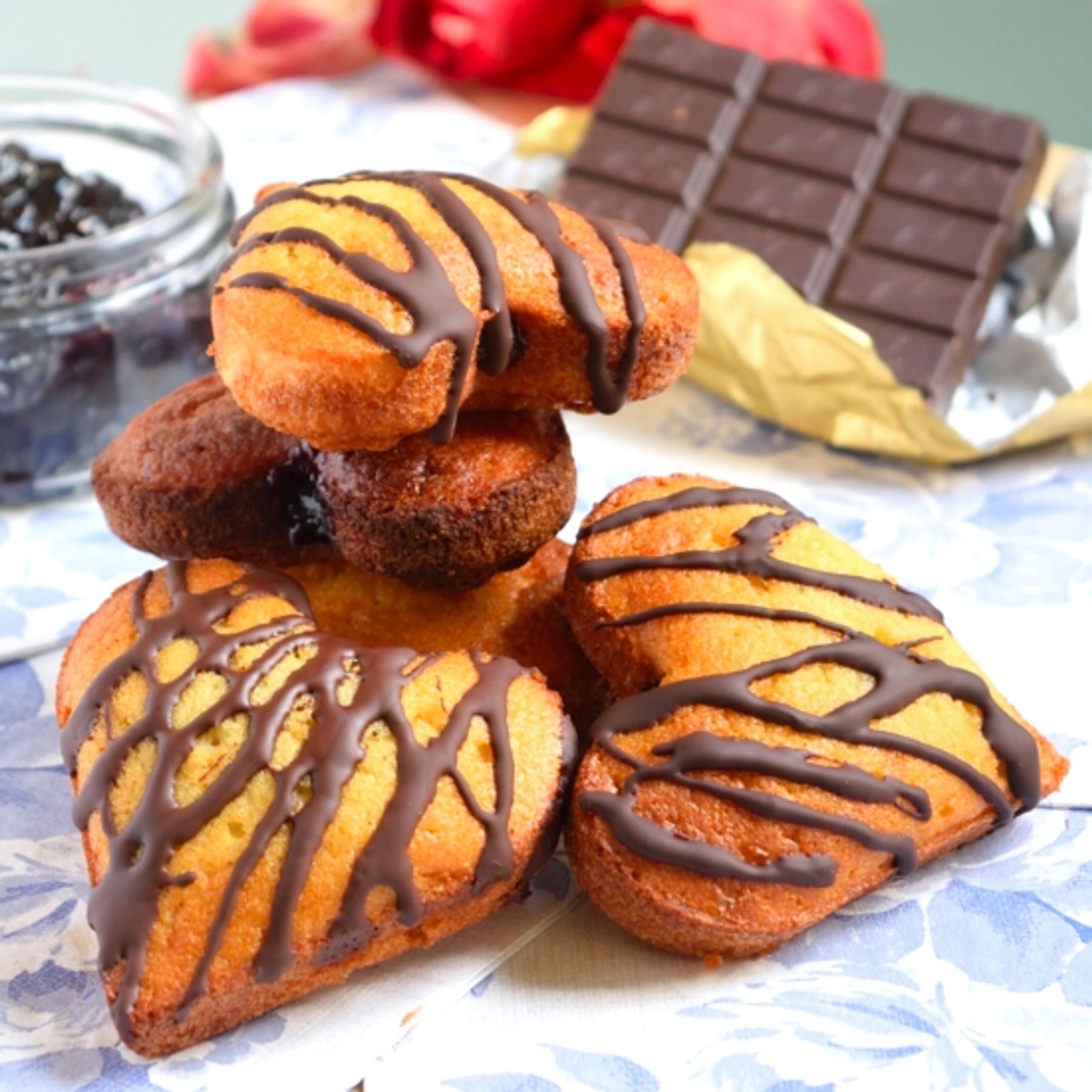 Chocolate Drizzle Cherry Jam Cakes