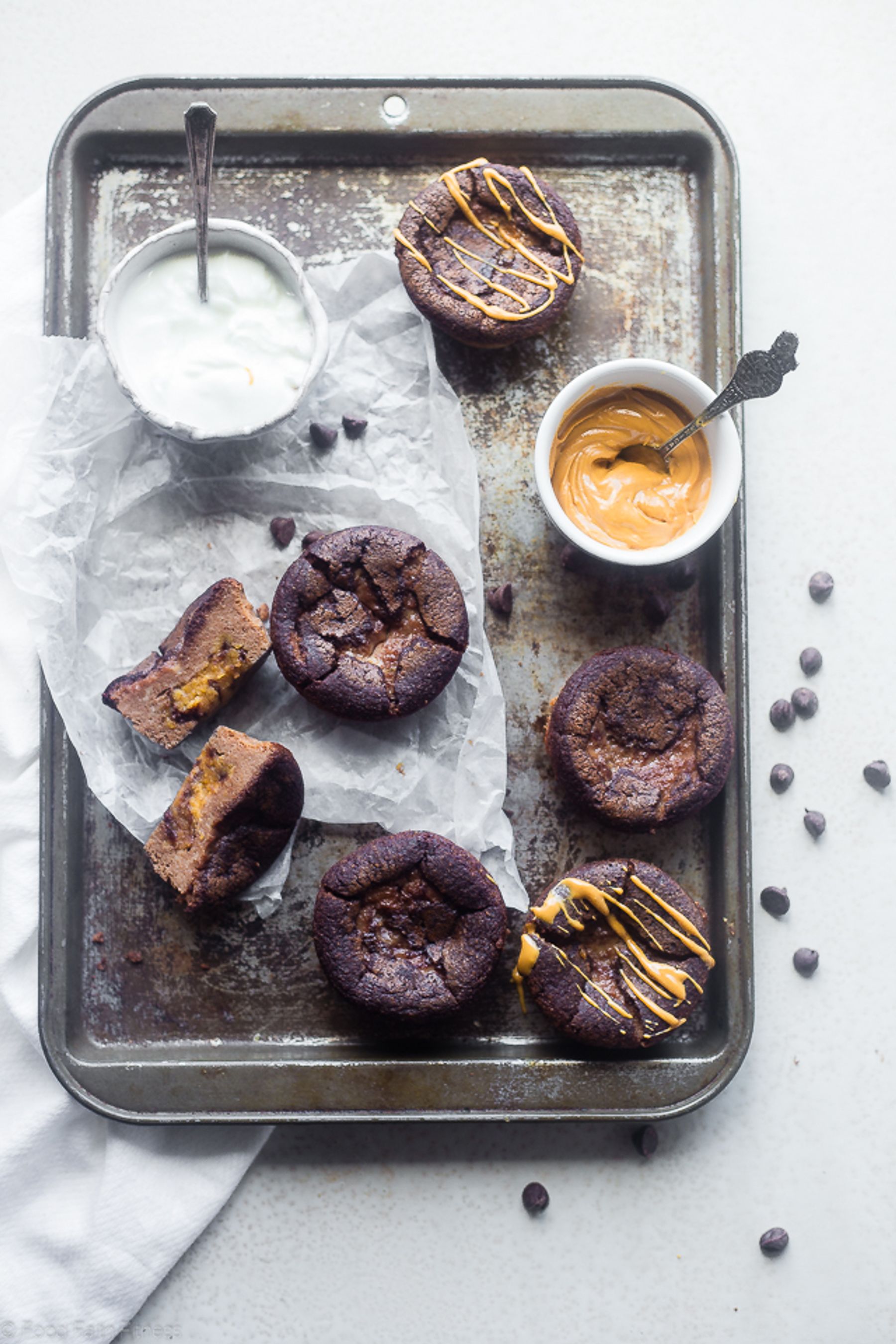These chocolate egg muffins have a cookie dough center, and a secret ingredient makes them gluten free and protein packed ! They’re an easy, healthy snack or portable breakfast for busy mornings!