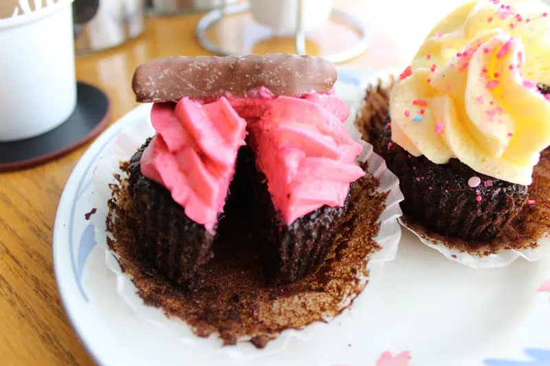 Chocolate Fish Cupcakes with Raspberry Frosting (Gluten Free)