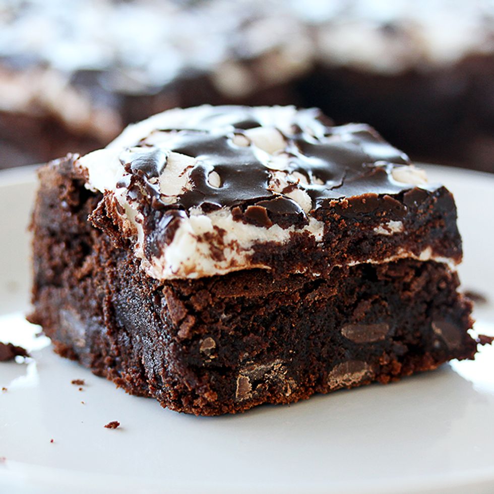 Chocolate Marshmallow Brownies. Moist and fudgy chocolate brownies, topped with melted marshmallows and chocolate glaze.