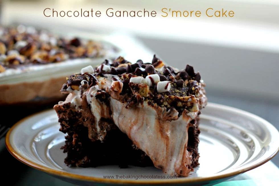 'Sweet Dreams' are made of this delicious, fluffy & creamy S'more pudding cake! It's filled with chocolate pudding and topped with marshmallow whipped cream, chocolate ganache, graham cracker bits and marshmallows! *Drooling*
