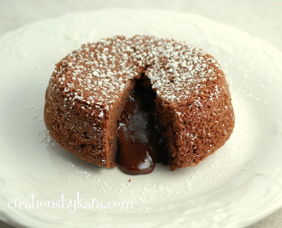 Chocolate cake with an oozing chocolate center. Vanilla ice cream is a must with this decadent dessert!