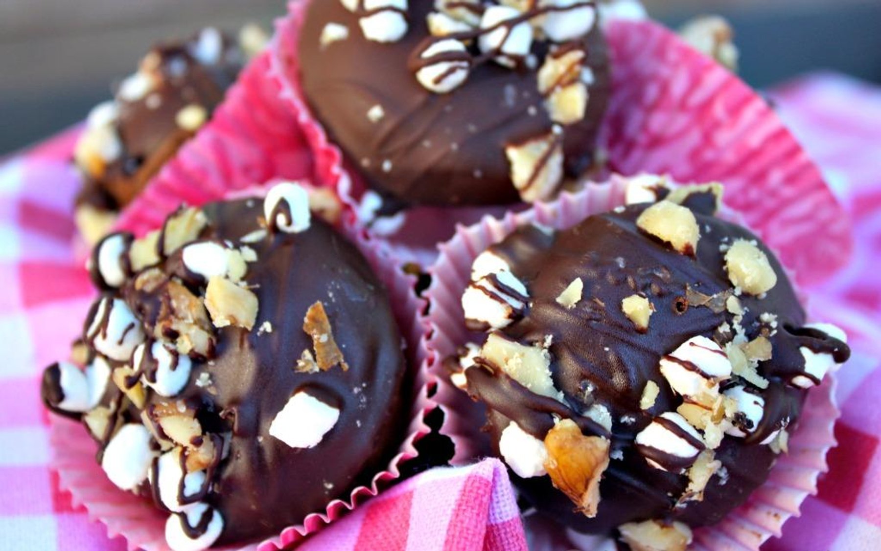 Mini Chocolate donuts are delicious small bites for breakfast, brunch or snack time! Leave them with chocolate or add mini marshmallows and nuts for Rocky Road donuts! -