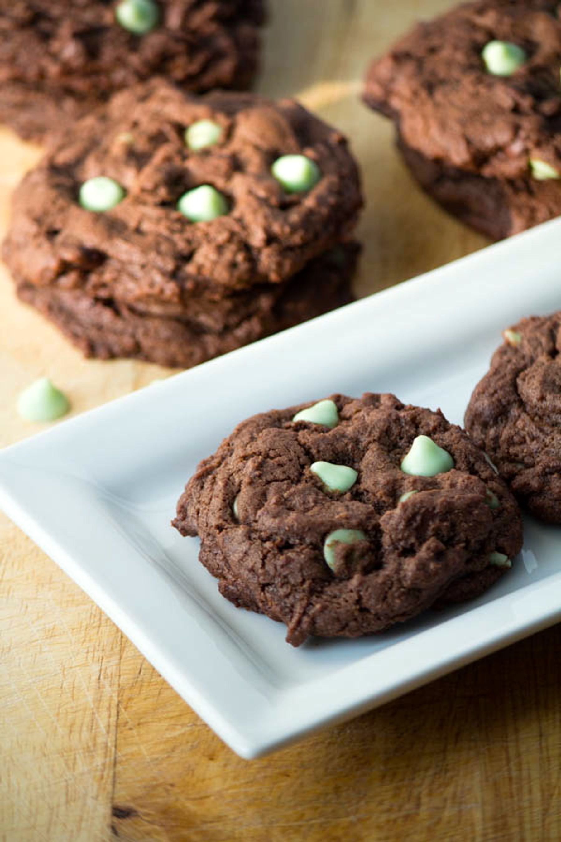 Dense, chocolatey, minty cookies that are super soft in the middle and slightly crispy on the outside. The perfect holiday cookie!