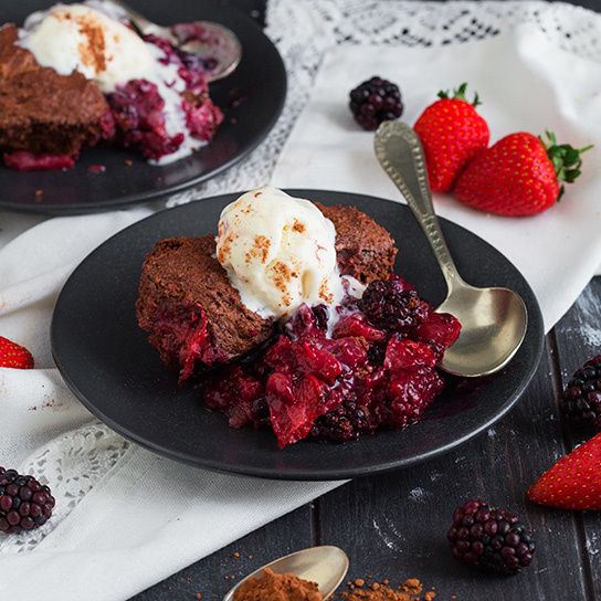 A twist on the classic cobbler, this Chocolate Mixed Berry Cobbler is full of flavour with a myriad of Summer berries and a rich chocolate topping.