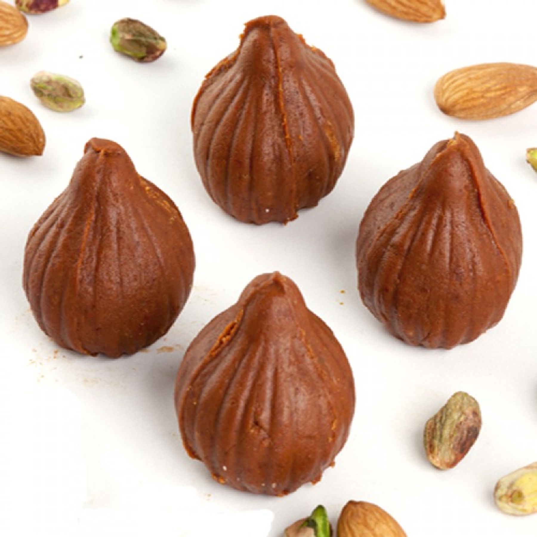 Take the modal mould and stuff with chocolate mixture to give that a modak shape.